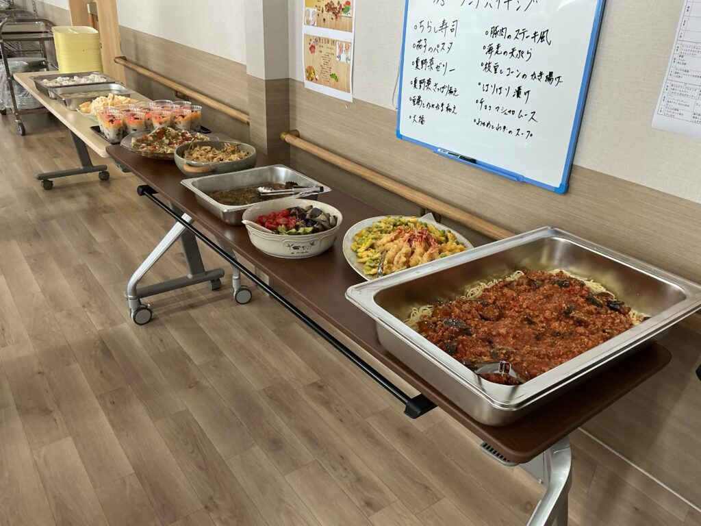 さあ‼️今日は毎月お楽しみのランチバイキング🍝🍡そして、午後は敬老会になります✨✨