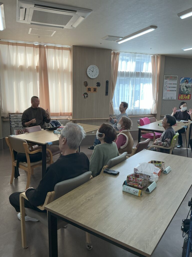 この日は入居者さんに体を動かしてもらおうと、レクリエーションとして軽い体操をしました。
