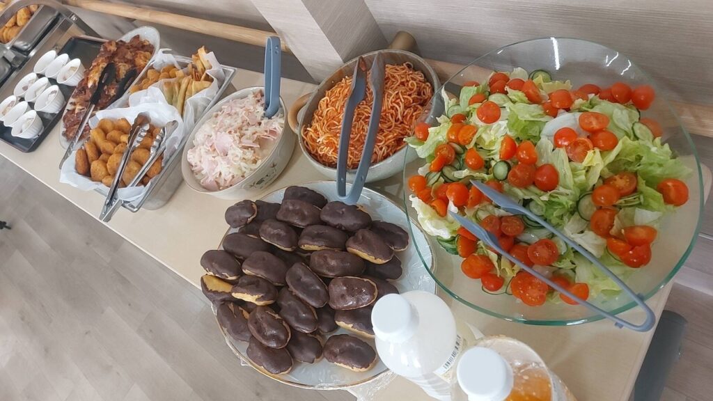 お知らせ 2026.02.27 はぁとWAN 2月ランチバイキング~ | 弘前市の住宅型有料老人ホーム 毎月20日はランチバイキング~ ・レタスサラダ ・ナポリタンサラダ ・ハムマリネ ・ホタテのクリームコロッケ ・アメリカンドック ・枝豆スティック ・トマトチキン ・カナッペ ・ブイヤベース ・エクレア 皆さんの笑顔に厨房スタッフもとってもうれしいです♪ また来月もお楽しみに~♪